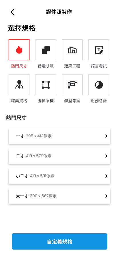 無論您需要標準尺寸還是特定尺寸,App 允許您選擇符合國際證件照相片標準的各種尺寸.
